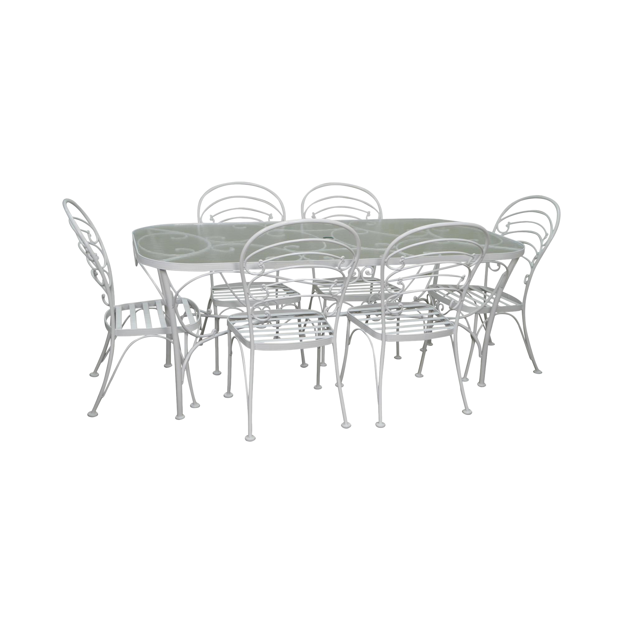 Woodard White Painted Oval Glass Top Patio Dining Table 6 Chair