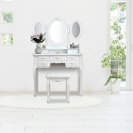 Topcobe Vanity Set With Tri Fold Mirror Wood Vanity Makeup Table