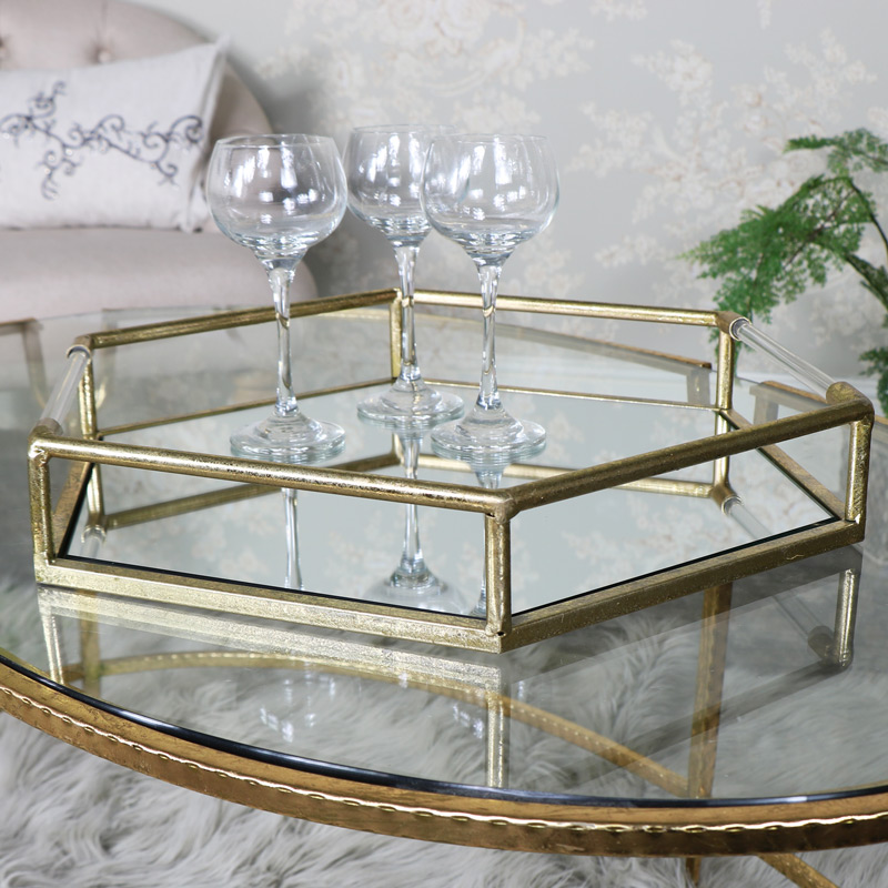 Large Antique Gold Hexagonal Mirrored Cocktail Tray Melody Maison
