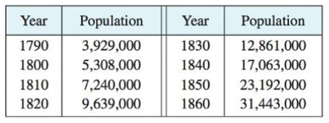 The Table Gives The Us Population From 1790 To 1860 A Use A