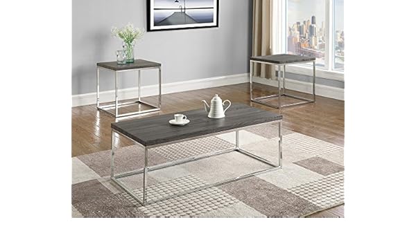 Amazon Com Britt 3 Pc Gray Wood Metal Coffee Table Set By Crown