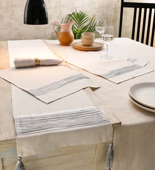 Buy Solaj Grey Cotton Table Runner Placemats Set Of 5 Online