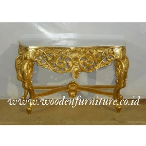 Antique Gold Color Glass Top Luxury Console Table Set Hallway