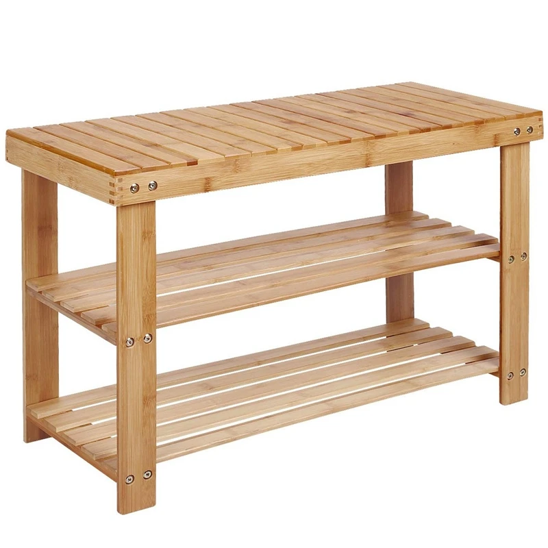 Natural Bamboo Shoe Rack Bench 2 Tier Shoe Organizer Entryway Seat