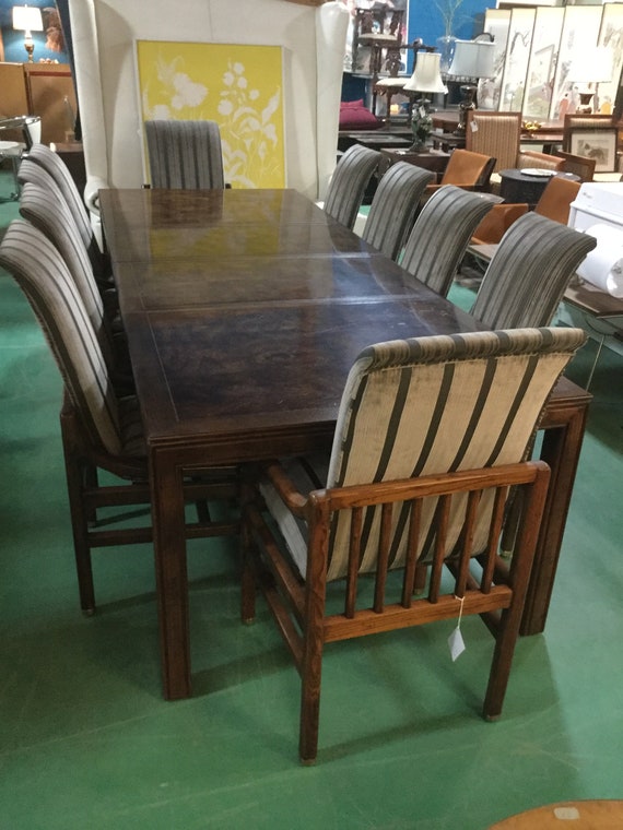 Ca 1970s Henredon Dining Set In Solid Walnut Parquetry Top On Etsy