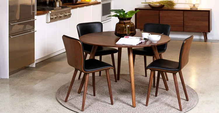 High Quality Round Wooden Dining Table 4 Chairs Set In Walnut