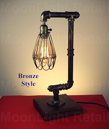 Vintage Industrial Retro Cage Steel Pipe Desk Table Lamp Light