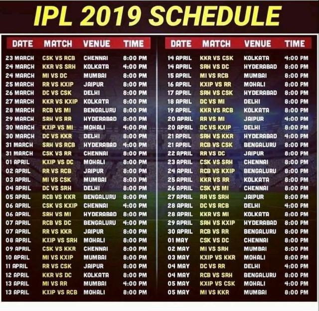 Ipl 2019 Schedule Time Table By Rangpara Naresh Issuu