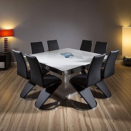 Avant Garde Large Square Dining Set White Gloss Table 8 High Back