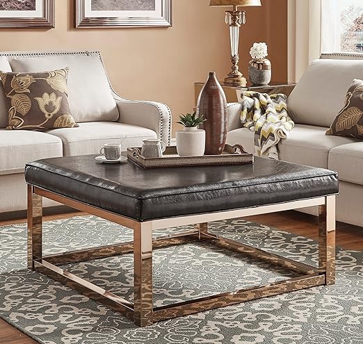 Amazon Com Luxurious Ottoman Coffee Table Smooth Faux Leather Top