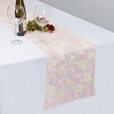 14 X 108 In Chiffon Rosette Tulle Table Runner Light Pink And