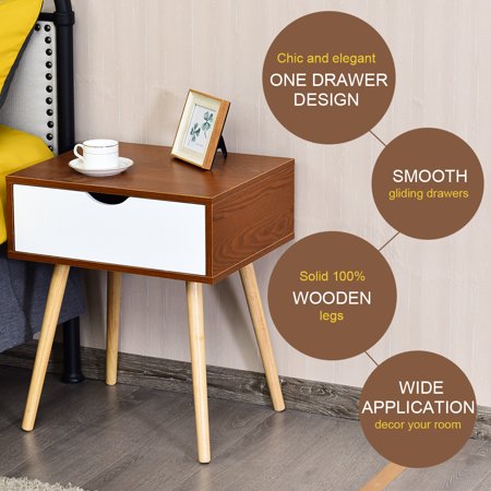 2pcs Nightstand End Side Sofa Table Storage Drawer Living Room W