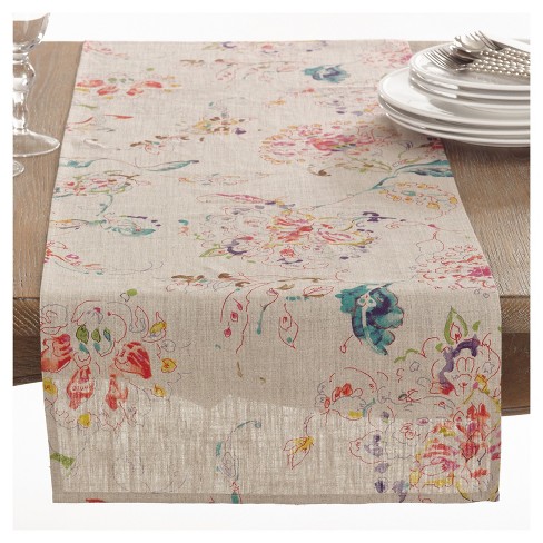 Light Brown Primavera Printed Floral Design Table Runner 16 X72