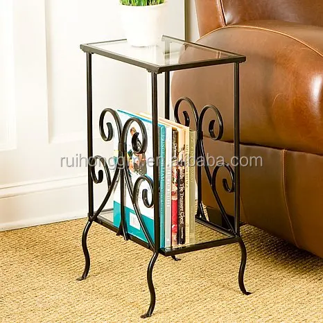 Living Room Scrolled Iron And Glass Magazine Table Sofa Side