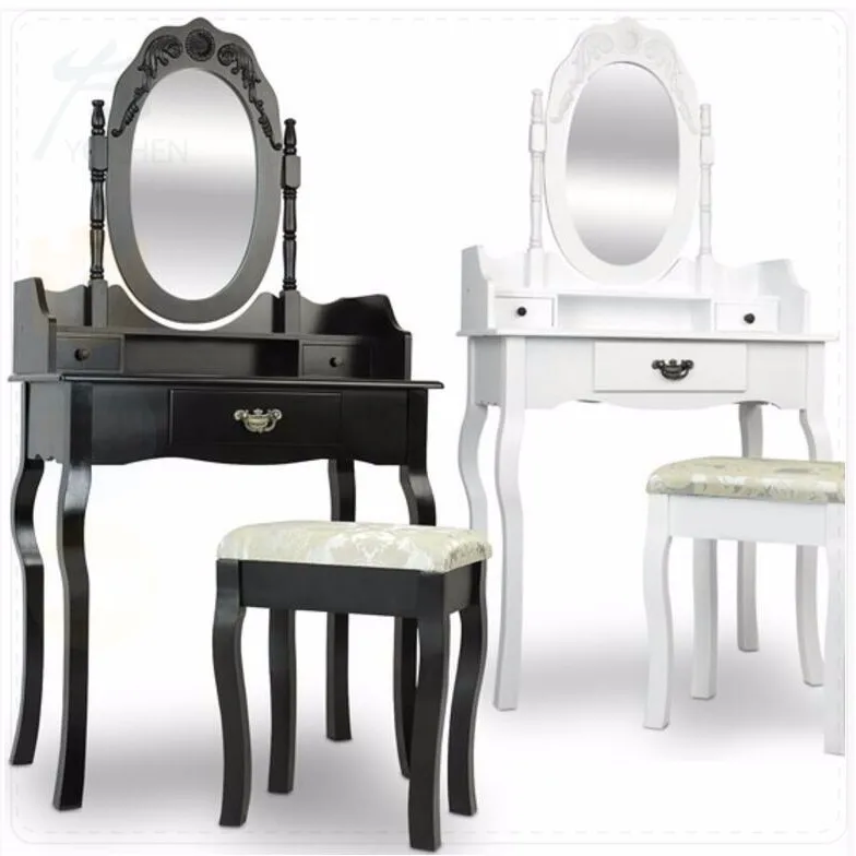 White And Black Vanity Wooden Carving Dressing Table For Girl
