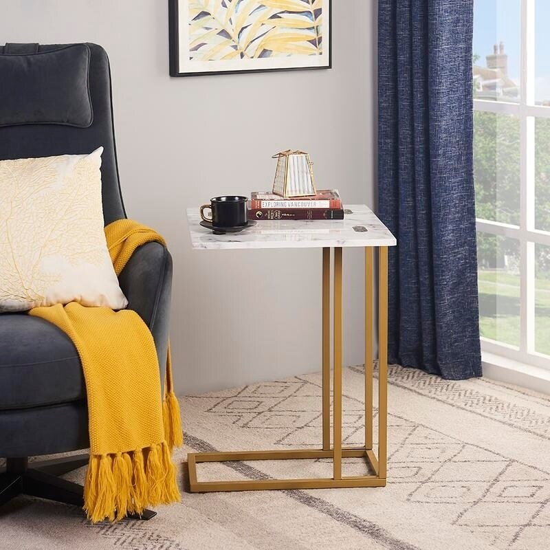 Marmo C Shape Table Faux Marble Brass Versanora White Gold In