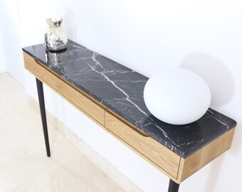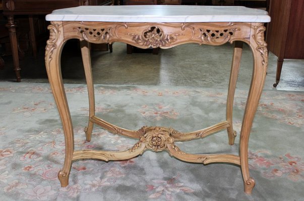 Antique Walnut And White Marble Console Table For Sale At Pamono