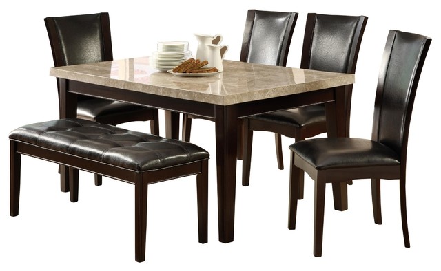6 Piece Hagan Dining Set Faux Marble Top Table 4 Chair Bench