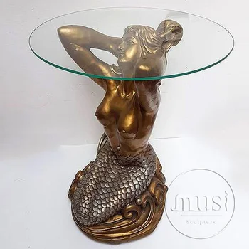 Art Decoration Metal Craft Cast Bronze Mermaid Table Base Statue