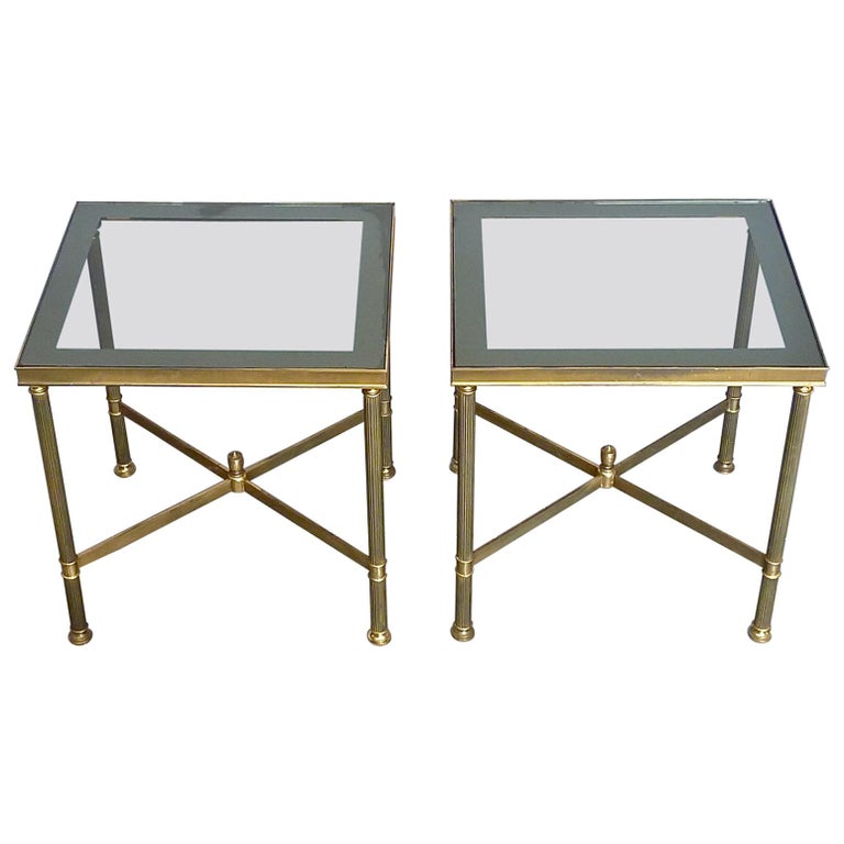 Pair French Midcentury Side Tables By Maison Jansen Patinated