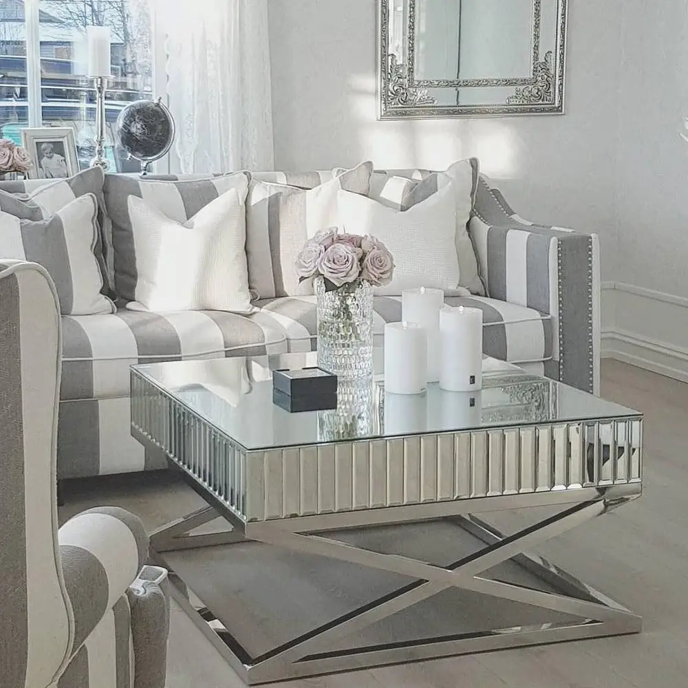 Living Room Furniture Set Classic Beveled Mirrored Coffee Side