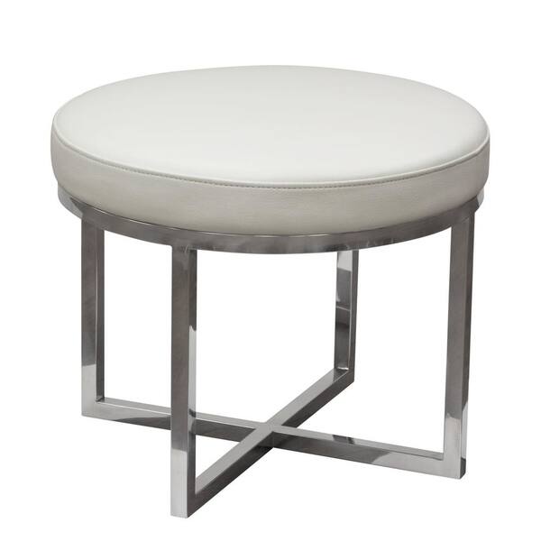 Shop Leather Upholstered Round Accent Stool With Cross Metal Legs