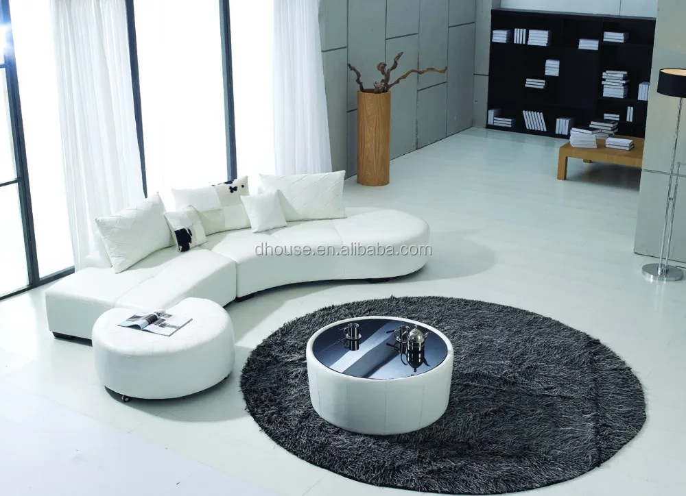 Modern Half Round Corner White Leather Sofa Set With Ottoman And