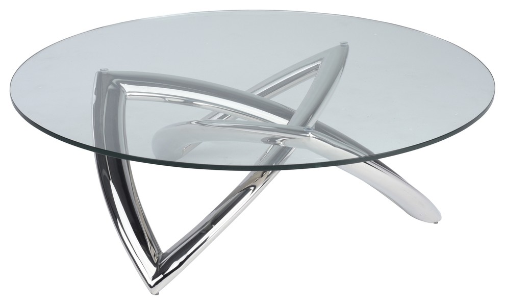 Martina Coffee Table Round Glass Top Polished Stainless Steel