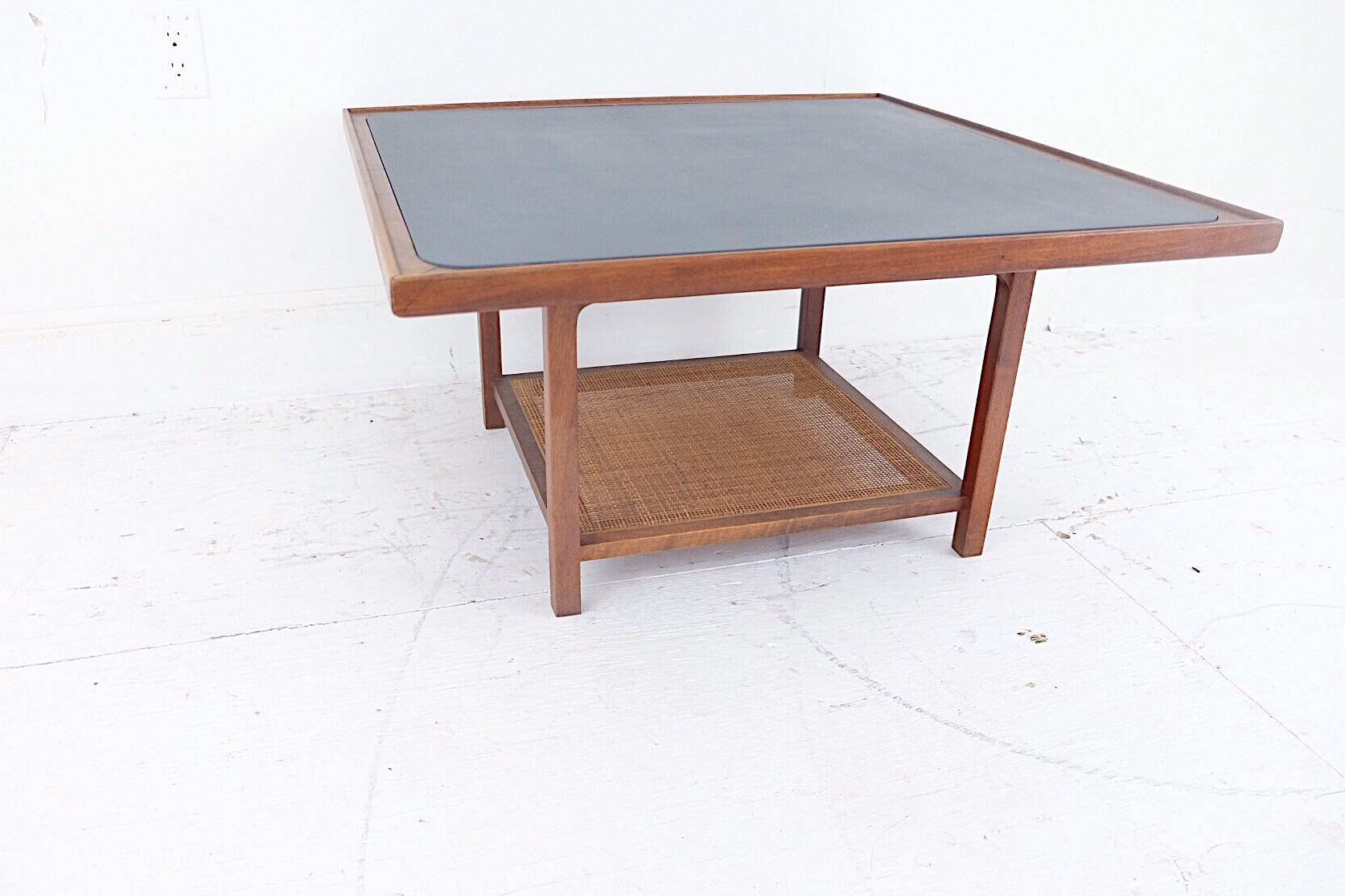 Danish Modern Square Coffee Table With Slate Top And Caned Etsy