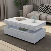 Modern Mid Century Style White Wood Coffee Table With 2 Drawers