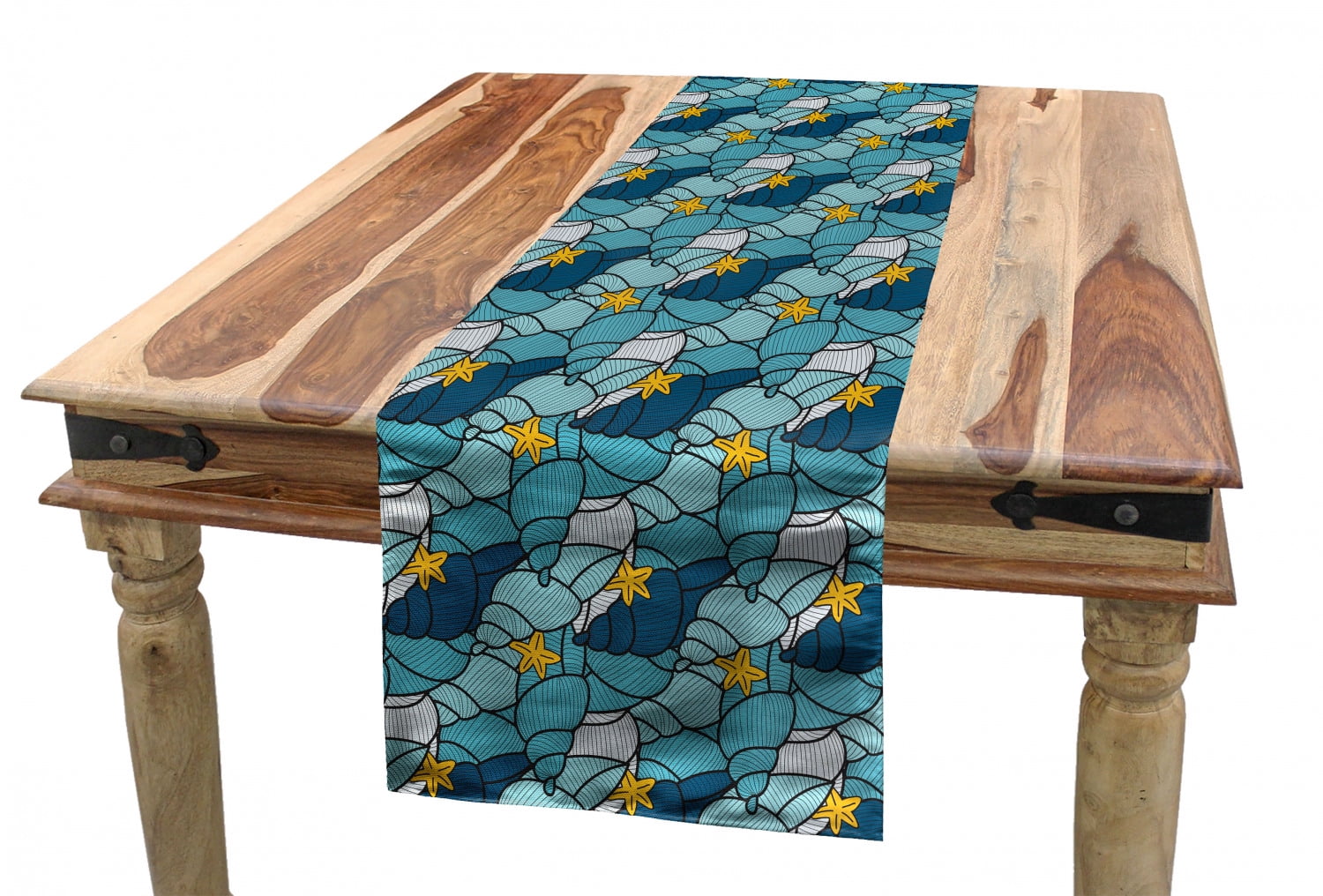 Nautical Table Runner Pattern Of Seashells And Starfish Dining