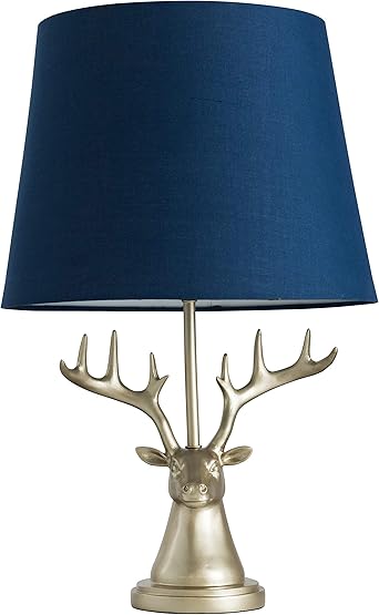 Caribou Head Design Table Lamp In A Champagne Finish With A Navy