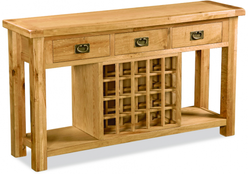 Rustic Range Oak 3 Drawer Console Table With Wine Rack