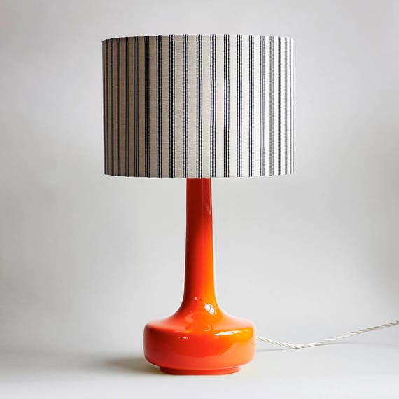 Bell Bottom Orange Table Lamp With Ticking Lampshade Etsy