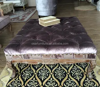 Hand Carved Wood Tufted Purple Velvet Ottoman Cocktail Table Buy