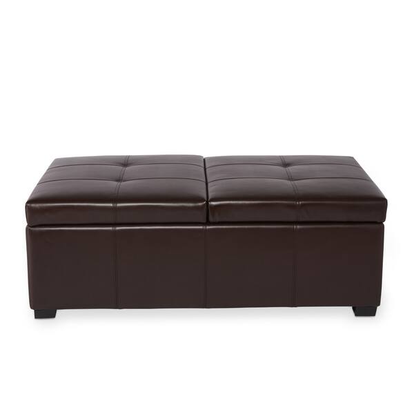 Shop Abbyson Frankfurt Dark Brown Leather Double Flip Top Storage