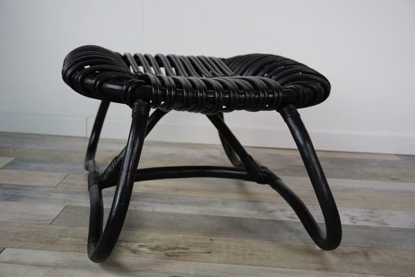 Rattan Lounge Chair Ottoman And Side Table Set For Sale At Pamono