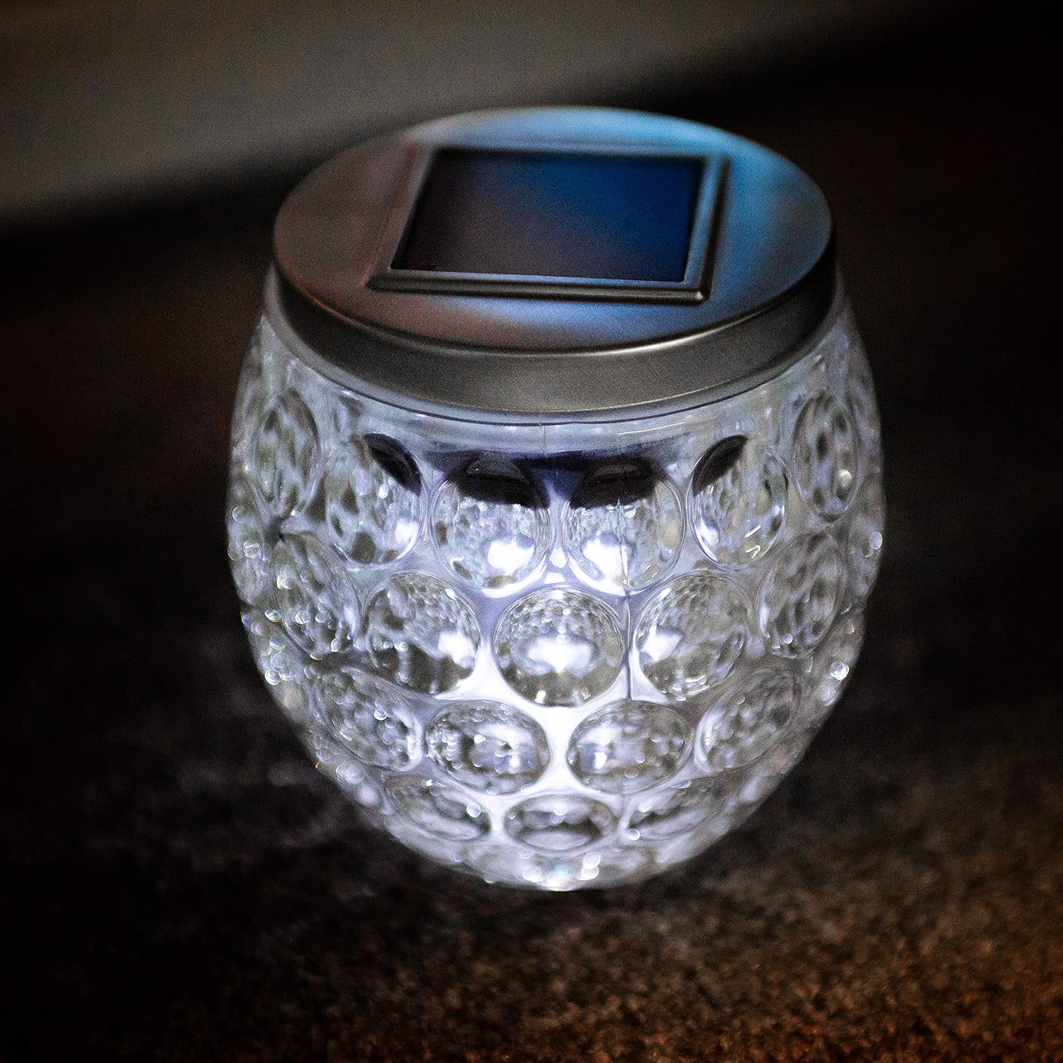 Garden Mile Solar Powered Mosaic Dimple Glass Jar Bright White