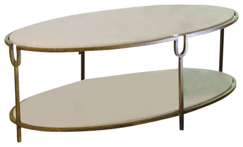 Iron And Stone Oval Coffee Table Transitional Coffee Tables