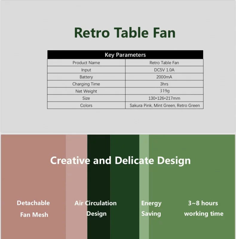 Innova Innova Retro Fan Retro Design Rechargeable Fan Sakurapink