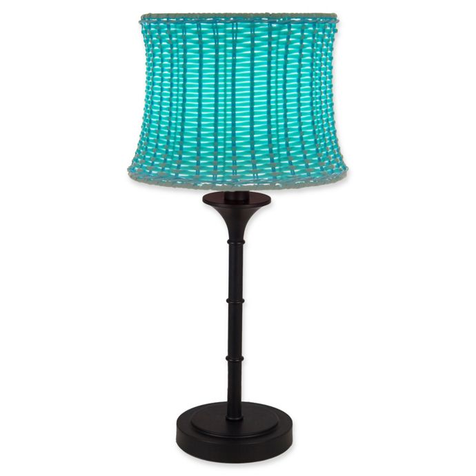 Outdoor Indoor Table Lamp In Brown With Basketweave Shade In Sky