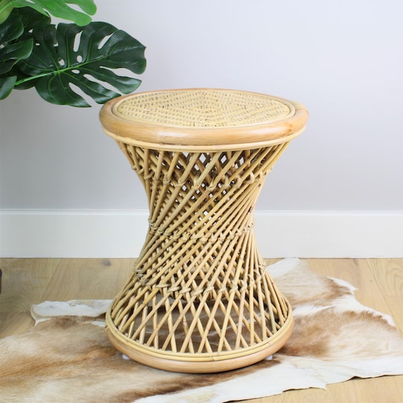 Koko Natural Rattan Stool Handmade Wicker Side Table Retro Etsy