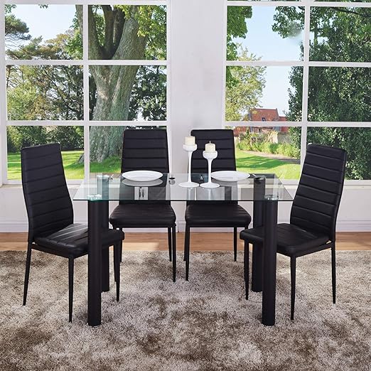 Goldfan Dining Table And 4 Chairs Rectangular Glass Kitchen Table