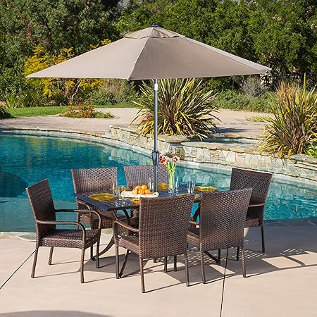 China Aluminum 7 Piece Rectangular Patio Dining Table Set With