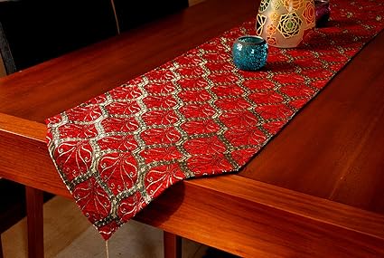 Accents Table Runner Silk Red Gold Embroidered Sun Flow Poshmark