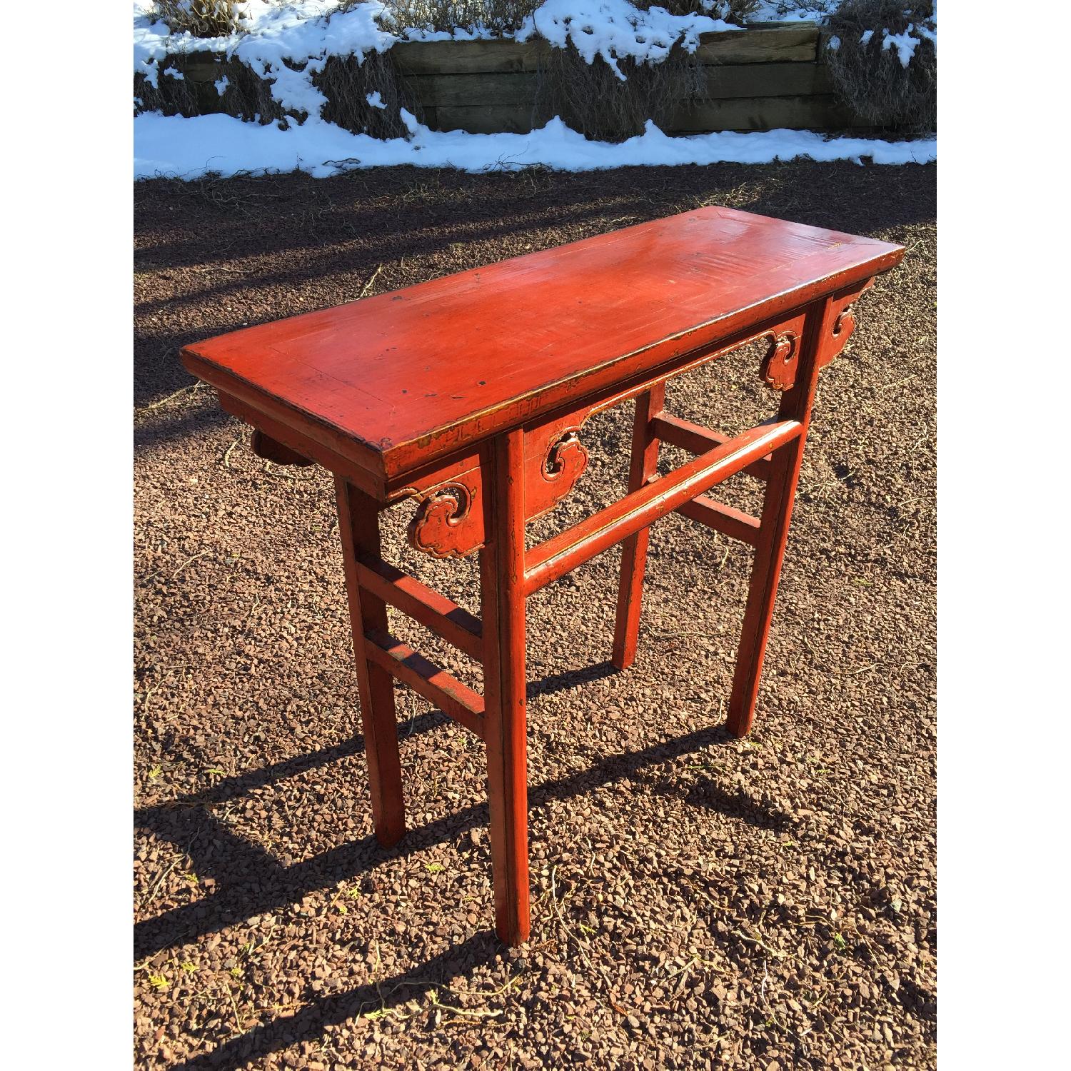 Asian Chinese Style Large Red And Gold Lacquered Narrow Console
