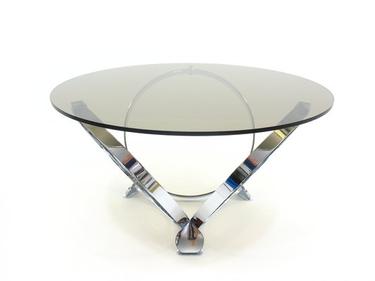 Chrome And Glass Round Coffee Table By Knut Hesterberg 1970s For