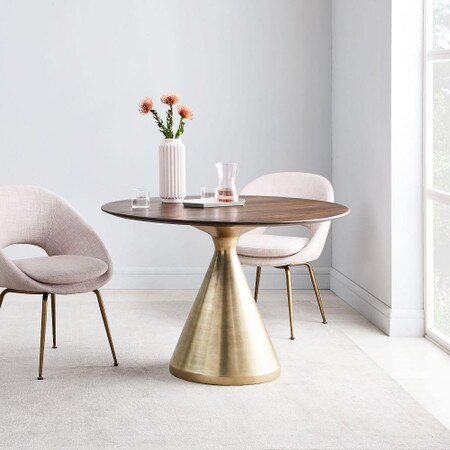 Silhouette Pedestal Round Dining Table Dark Walnut Antique Brass