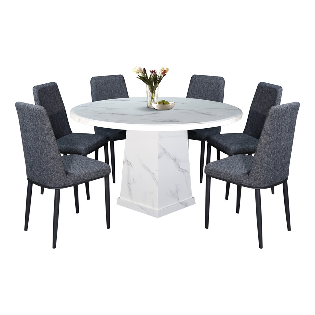 Arlesey Grey Marble Dining Table Round With 4 Charcoal Chairs