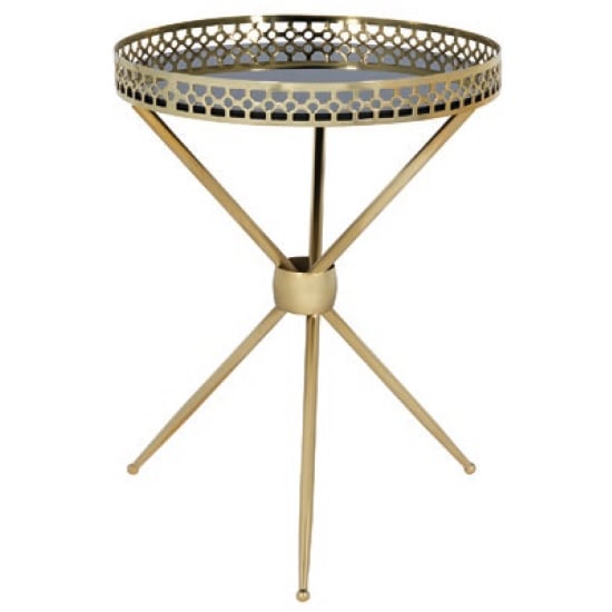 Deford Mirrored Side Table Round In Black And Gold Finish